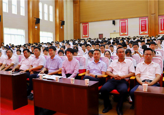 肖煒和與會(huì)領(lǐng)導(dǎo)同志分別向考入清華大學(xué)、北京大學(xué)的優(yōu)秀畢業(yè)生頒發(fā)獎(jiǎng)金、贈(zèng)送鮮花。鄲城一高黨委副書(shū)記白忠璽匯報(bào)了該校2019年高考成績(jī),副校長(zhǎng)張暉宣讀了學(xué)校表彰文件。