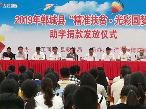 本次“精準(zhǔn)扶貧·光彩圓夢(mèng)”由縣萬洋集團(tuán)慷慨解囊、傾情相助,共捐資20萬元,對(duì)100名品學(xué)兼優(yōu)的貧困學(xué)子給予資助,為鄲城的教育事業(yè)增光添彩。