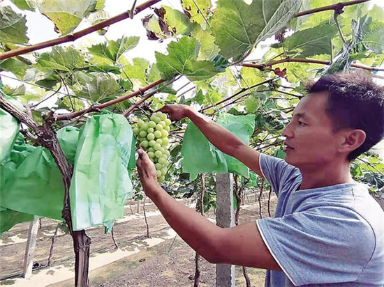 在楊樓村,轉業(yè)返鄉(xiāng)的李玉柱在土地上也做出了大文章。李玉柱在部隊服役15年,本可按政策安排工作。但是,他有著強烈的創(chuàng)業(yè)熱情。三年前,在鄉(xiāng)村兩級組織的支持下,他租用村集體土地,投入100多萬元搞葡萄種植。目前,葡萄進入豐產(chǎn)期,李玉柱每年都可實現(xiàn)收入20多萬元。