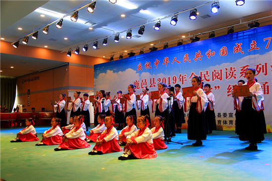 9月27日,由中共鹿邑縣委宣傳部主辦、鹿邑縣教育體育局承辦的慶祝中華人民共和國(guó)成立70周年、鹿邑縣2019年全民閱讀系列活動(dòng)——全縣中小學(xué)生“歡樂進(jìn)萬家”經(jīng)典誦讀比賽(決賽)在弘德中學(xué)報(bào)告廳舉行,在初賽中嶄露頭角的十六個(gè)單位的近800名師生參加了決賽。