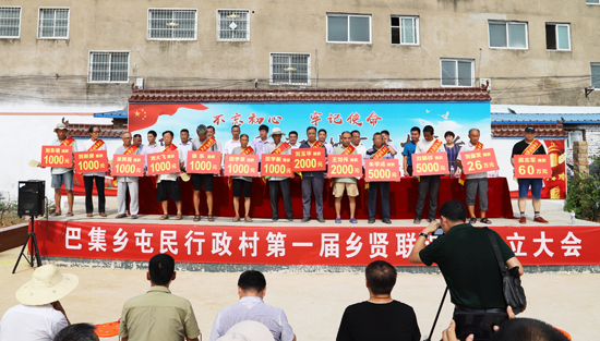 “段志軍每年都捐資捐物回報家鄉(xiāng),他去年捐30萬為巴集大街和屯民村安裝的200多盞路燈已經亮了,捐85萬元新建的村室馬上竣工,將是全縣標準最高的,現在又捐60萬元;劉振發(fā)這幾年捐了40萬多,給村里修路、栽樹、幫扶貧困戶,今天又捐26萬;鄉(xiāng)賢會成立之前,大家已累計捐款240多萬元……”在今年8月6日屯民行政村鄉(xiāng)賢會成立儀式上,朱明理宣布捐款名單時多次被雷鳴般的掌聲打斷;“最難忘的就是村口的那棵大楊樹,最好吃的就是中午剩的涼面條、晚上嗑著大蒜吃。”在三門峽創(chuàng)業(yè)的劉振發(fā)的發(fā)言勾起了眾多游子的親情回憶;“啃個干饃,灶火里燒個辣椒一砸,撒點兒鹽就是最好吃的?!痹谏糖鹑温毜男炱渖浇舆^話茬說;“事業(yè)越大,工作越忙。但是,他們從四面八方歸來,這就是對家鄉(xiāng)的情誼,我們村肯定會越來越好。”鄉(xiāng)賢徐其民感慨地說;“從屯民走出的大學生不少,如今長成了企業(yè)家、行政干部等等,如參天大樹,卻不忘根、不忘本,這就是屯民的驕傲。”從事教育行業(yè)35年的鄲城二高校長趙耀身為屯村一員感觸良多……