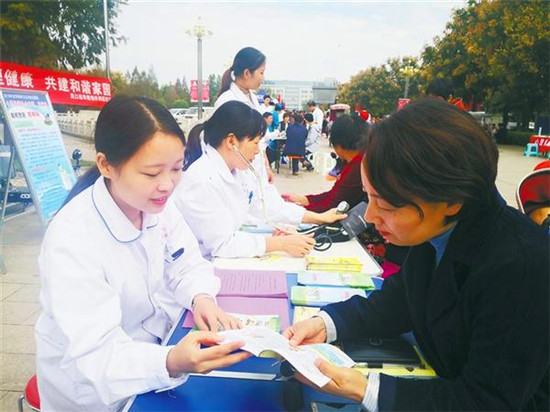 10月10日是世界精神衛(wèi)生日,當日上午9時至11時,周口市衛(wèi)健委組織我市28家醫(yī)院在川匯區(qū)文化廣場舉辦主題為“心理健康社會和諧,我行動”的義診活動?;顒蝇F(xiàn)場,100多名醫(yī)務(wù)人員向群眾提供免費疾病咨詢,宣傳普及精神衛(wèi)生健康醫(yī)學(xué)知識,紛紛開出身心健康處方,受到群眾的熱烈歡迎。