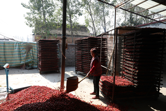 “大伙兒別著急啊,讓我喝口水喘喘氣再來(lái)給你們的小辣椒過(guò)磅……”在西華縣艾崗鄉(xiāng)苗里崗行政村一家村辦炕椒廠院內(nèi),老板郭有明忙得汗流浹背。來(lái)賣辣椒的村民隊(duì)伍都排到院外了,他擰開(kāi)一瓶礦泉水喝個(gè)精光后又忙起來(lái)。