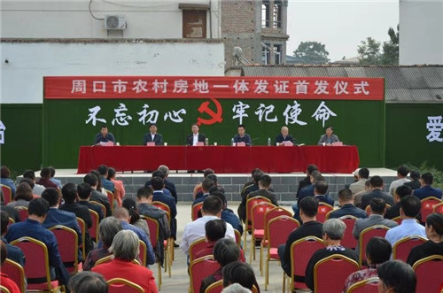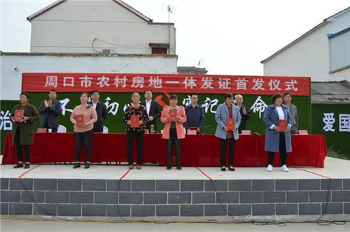 10月24日,周口市農村“房地一體”不動產權證書首發(fā)儀式在淮陽縣白樓鎮(zhèn)大郝村舉行,周口市自然資源和規(guī)劃局黨組成員、副局長劉東明、淮陽縣委常委李祥生等領導為首批農房權利人頒發(fā)不動產權證書。