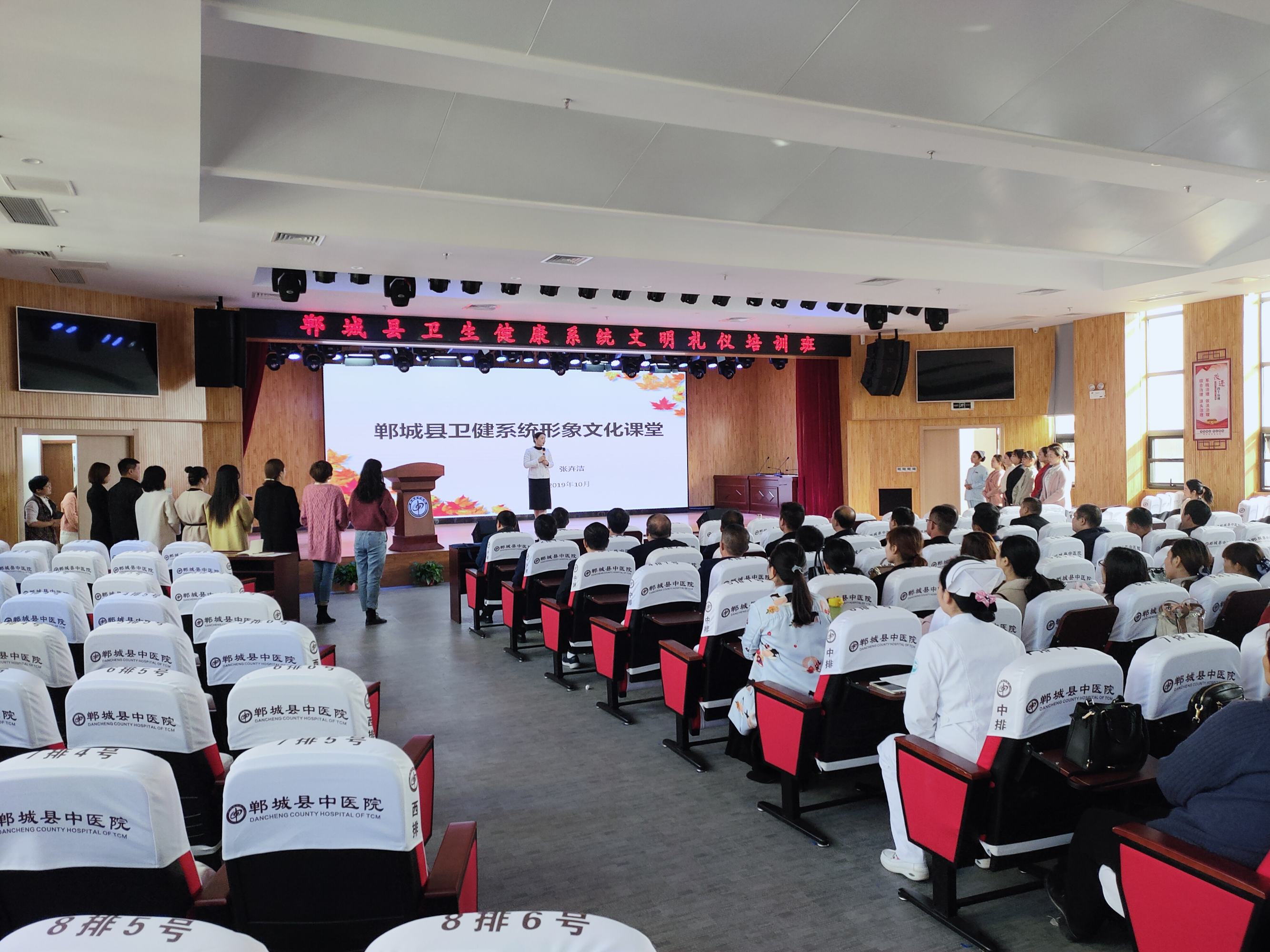 為一步提升全縣衛(wèi)健系統(tǒng)醫(yī)護人員綜合素質,打造鄲城衛(wèi)健系統(tǒng)形象新名片,10月28日,鄲城縣衛(wèi)健委在縣中醫(yī)院學術報告廳舉辦衛(wèi)健系統(tǒng)文明禮儀培訓班。四家醫(yī)療健康服務集團分管醫(yī)改、健康促進、健康扶貧副院長、護理部主任、護士長,各鄉(xiāng)鎮(zhèn)衛(wèi)生院院長、護士長和各單位選拔的講解員共計120多人參加了培訓活動。
