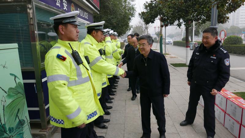 慰問中,皇甫立新、劉國慶一行首先來到縣交警大隊城區(qū)中隊五岔路口執(zhí)勤點,同正在執(zhí)勤的交通民警一一握手,并代表縣委、縣政府向交警大隊全體民警、協(xié)警一年來付出的努力和辛苦表示感謝和問候,囑咐他們要注意安全,保重身體。在詳細(xì)了解了春節(jié)期間治堵保暢工作情況匯報后,皇甫立新對交警大隊全體民警和輔警在春節(jié)期間放棄和家人團(tuán)聚,舍小家顧大家,堅守在道路交通安全管理崗位的工作態(tài)度,以及主動作為,敢于擔(dān)當(dāng),無私奉獻(xiàn)、任勞任怨的工作作風(fēng)給予高度肯定。并希望大家在春節(jié)期間,繼續(xù)發(fā)揚(yáng)吃苦耐勞的精神,全力做好道路安全保障工作,確保春節(jié)期間全縣道路交通安全暢通,讓全縣人民度過一個平安、祥和的春節(jié)。同時,縣交警大隊要進(jìn)一步做好執(zhí)勤民警后勤保障及防寒保暖工作,加強(qiáng)人員輪換上崗,切實保障公安交警切身利益,解決他們的后顧之憂。