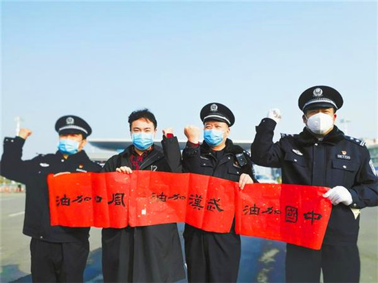作為一名人民警察,我市新型冠狀病毒感染的肺炎疫情防控阻擊戰(zhàn)打響后,朱成剛幾乎沒有回過家,在鄭州大學書法學院上學的兒子朱震昊已經(jīng)一周沒有見到父親了。2月3日上午,他偷偷來到商南高速北站口,把精心書寫的“中國加油”“武漢加油”“周口加油”等書法作品送給父親及其戰(zhàn)友手中,為他們助力加油。記者 陳永團 攝