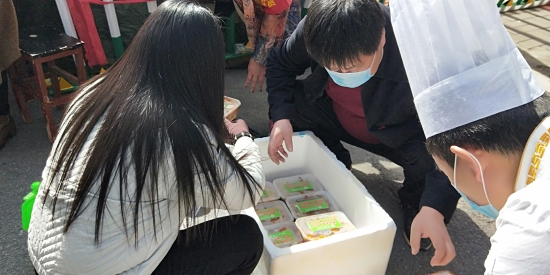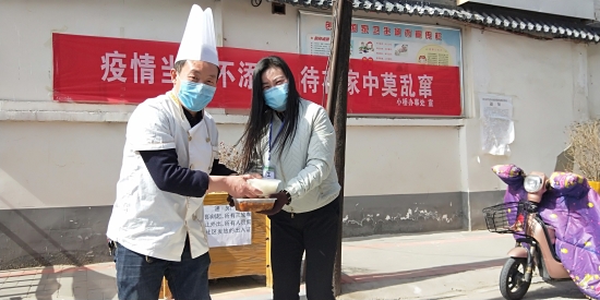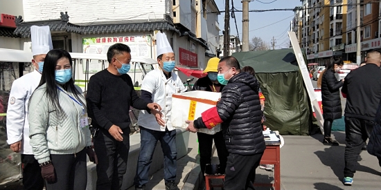 2月22日中午,川匯區(qū)小橋辦事處高莊社區(qū)疫情防控值勤卡點(diǎn)迎來盛世宴賓樓的大廚們,他們帶著熱騰騰的午餐前來慰問值勤人員,為抗疫一線工作者改善伙食。盛世宴賓樓負(fù)責(zé)人智廣旭告訴記者,社區(qū)疫情防控工作緊張忙碌,他好幾次看到值勤卡點(diǎn)的工作人員用方便面對(duì)付一日三餐,心里很感動(dòng)也很難受,所以飯店決定在疫情結(jié)束之前連續(xù)贈(zèng)送午餐晚餐,“讓社區(qū)卡點(diǎn)的同志吃好點(diǎn)”。
