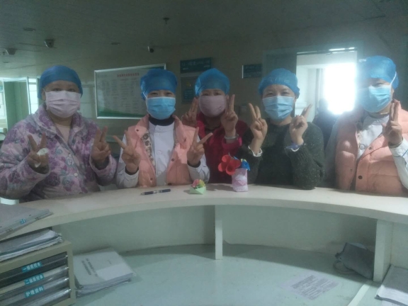 2月25日上午, 35床的王娟娟帶著幾位同樣是腫瘤患者的“朋友”, 捧著一束用紙折疊的自制手捧花,有玫瑰、有百合,一起走向護士站。王娟娟向醫(yī)護人員說道 “我們同為腫瘤患者,是屬于免疫力最低的一個群體,在疫情爆發(fā)期間,我們的心情無比恐慌、擔(dān)心和害怕。是你們給了我們安慰、理解和幫助。你們每天對病房進行消毒、通風(fēng),不斷叮囑我們勤洗手、戴口罩,鼓勵我們克服困難、戰(zhàn)勝病魔、樹立生活信心,你們無微不至的關(guān)懷帶給了我們很多感動與鼓勵,你們的責(zé)任心更讓我們佩服,真心感謝你們……”