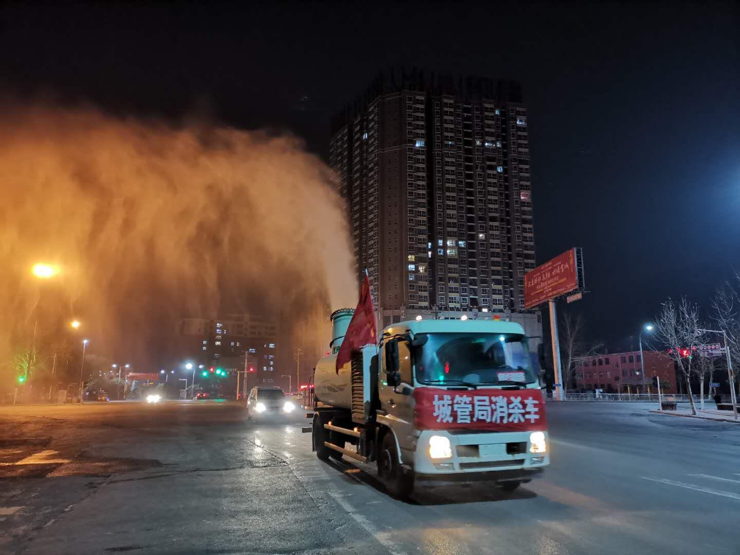 “疫情不滅,我們不休”,3月1日(星期天)在仙臺路消殺現(xiàn)場環(huán)衛(wèi)管理員張冬冬說。當天在仙臺路、芙蓉街等路段,縣城市管理局的環(huán)衛(wèi)工人利用熱煙霧機及肩背超低容量噴霧器等衛(wèi)生消殺器械,加班加點對沿街道路、門店、公廁、垃圾箱、垃圾桶、垃圾中轉(zhuǎn)站等公共區(qū)域和疫情防控卡點、超市門口等公共場所噴灑消毒劑開展環(huán)境衛(wèi)生消殺。