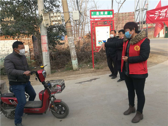 臘月三十那天,餃子剛剛包好,王愛月同志臨危受命,根據(jù)鎮(zhèn)黨委安排部署,果斷迅速組織布防嚴控,立即進入疫情防控第一線。鄉(xiāng)鎮(zhèn)召集各村黨支部書記召開會議,分析研判嚴峻形勢,要求各村支部發(fā)揮基層組織“戰(zhàn)斗堡壘”作用,立即摸清情況,穩(wěn)定群眾情緒,增強群眾信心;鎮(zhèn)中心衛(wèi)生院給各村醫(yī)安排防疫工作。會后,村兩委班子第一時間成立了奉母鎮(zhèn)后邵村防控新冠肺炎疫情領(lǐng)導(dǎo)小組,王愛月?lián)胃苯M長,協(xié)助支部書記制定全村防控應(yīng)急處置方案,負責處理疫情持續(xù)期間各類防控工作,結(jié)合后邵村實際,從疫情摸排、防控物資采購、應(yīng)急值守、各場所消毒、道路設(shè)卡等各方面全面做好準備。全村組建6個排查組對全村居民逐戶排查,她親自帶隊逐戶排查所有外來人員,確保不漏一戶一人。之后,建立排查臺賬,及時準確掌控疫情動態(tài),為每位務(wù)工返鄉(xiāng)人員發(fā)放了注意事項告知書和宣傳單,對外出返鄉(xiāng)人員落實了包戶責任制。同時建立防控微信群,實時掌握他們的身體情況,解答他們的疑惑,全力做好心理疏導(dǎo)工作,切實解決鄉(xiāng)里鄉(xiāng)親的困難問題。