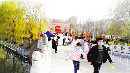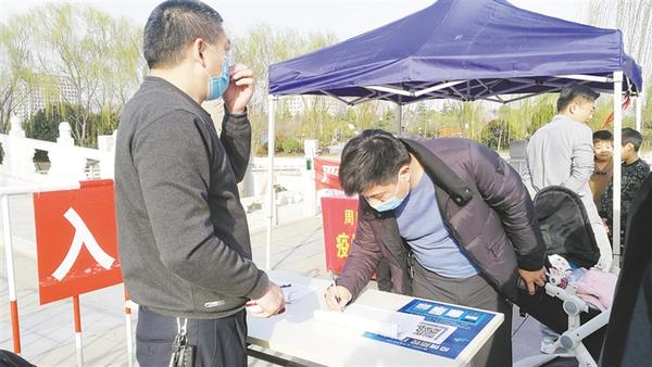 本報訊 3月10日,天氣晴朗,暖意融融,關閉一個多月的周口公園開園迎客第二天,記者在周口公園看到,游客都戴著口罩,經(jīng)登記、測溫后依次入園,園內(nèi)秩序井然。