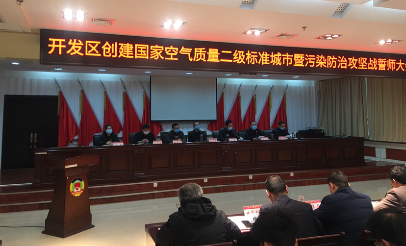 3月13日,開(kāi)發(fā)區(qū)召開(kāi)創(chuàng)建國(guó)家空氣質(zhì)量二級(jí)標(biāo)準(zhǔn)城市暨污染防治攻堅(jiān)戰(zhàn)誓師大會(huì)。開(kāi)發(fā)區(qū)黨委書(shū)記王文峰出席會(huì)議并講話。開(kāi)發(fā)區(qū)管委會(huì)主任劉濤主持會(huì)議。開(kāi)發(fā)區(qū)領(lǐng)導(dǎo)楊國(guó)建、于杰、趙愚、王靜及市公安局太昊路分局政委劉振國(guó)參加會(huì)議。