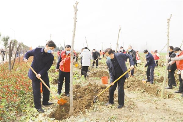 三埋土、兩踩實、一提苗……陽春三月,豫東大地植綠正當(dāng)時??h領(lǐng)導(dǎo)崔衛(wèi)國、李建軍、王偉等和廣大志愿者、群眾一起揮鍬鏟土,栽植新綠,為鄲城大地再添綠意。