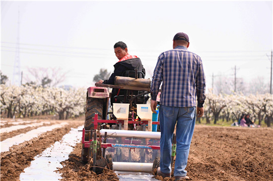 春光明媚,土壤濕潤,正是春耕春播的好時機,農(nóng)民們給玉米、冬小麥、棉花等農(nóng)作物開播、澆水、施肥,為秋季豐收做好布局。近日,記者在黃泛區(qū)看到,農(nóng)民們種植玉米已經(jīng)實行機械化,下種、施肥、打藥、壓上薄膜,一次成型,減輕了勞作的壓力。