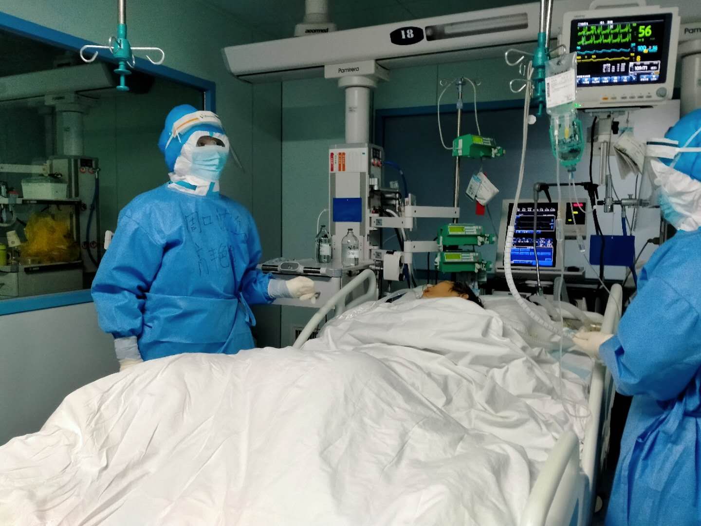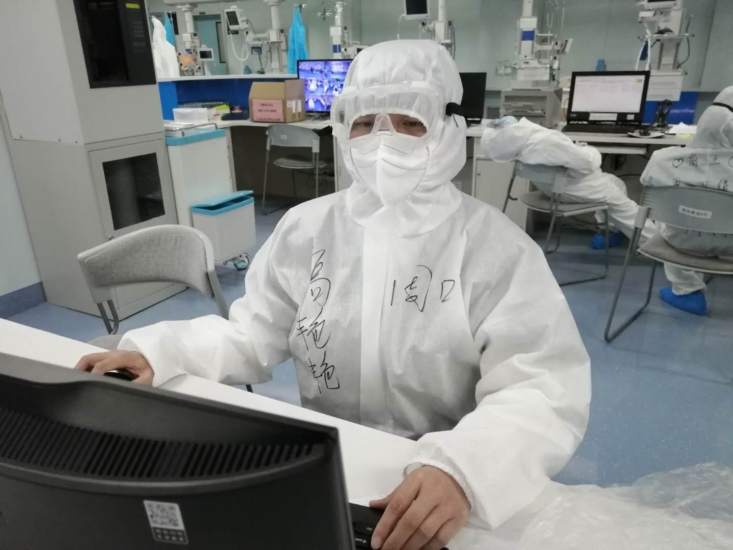 高艷艷說,除了多穿一層防護(hù)服,其他的跟平時(shí)的工作差不多。不同的地方,主要體現(xiàn)為兩點(diǎn),一就是從接班到交班,所做的所有工作都多了一份被感染的風(fēng)險(xiǎn)。二就是救治存在的難點(diǎn)多、棘手的問題多、突發(fā)事件比較多,比如說:新冠肺炎患者發(fā)展到危重期,特別是病程較長的病人,肺大多爛掉了,多數(shù)病人上有呼吸機(jī),這樣的病人極易出現(xiàn)氣胸。有一次值班期間,一位56歲的男性患者,突發(fā)氧分壓下降、煩躁、血壓下降、出汗,急查胸片證實(shí)氣胸,緊急給予了胸腔穿刺閉式引流,病人癥狀才得以緩解。氣胸雖然在臨床上很常見,但對于新冠肺炎病人卻如同雪上加霜,不緊急處理病人很快就會死掉。每一個搶救的場面如同一場激烈的戰(zhàn)場,而戰(zhàn)斗隨時(shí)會打響,但你卻根本無法預(yù)測哪一次戰(zhàn)斗會在哪一個時(shí)刻打響,所以值班時(shí)每位醫(yī)師都會慣性地緊盯著每個數(shù)值、各個參數(shù)……