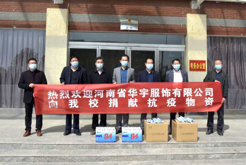 校園里的花朵迎風綻放,但這個春天卻缺少了師生矯健的身影。4月13日,在周口市部分中學陸續(xù) 復(fù)課之際,河南省華宇服飾有限公司董事長王華偉來到淮陽區(qū)實驗高中,為該校捐贈一次性口罩2000只 、84消毒液2箱。據(jù)了解,為助力學校打贏疫情防控阻擊戰(zhàn),連日來,華宇服飾有限公司已向太康、扶溝 、淮陽等縣、區(qū)部分中學捐贈一次性口罩20萬只,價值30多萬元。