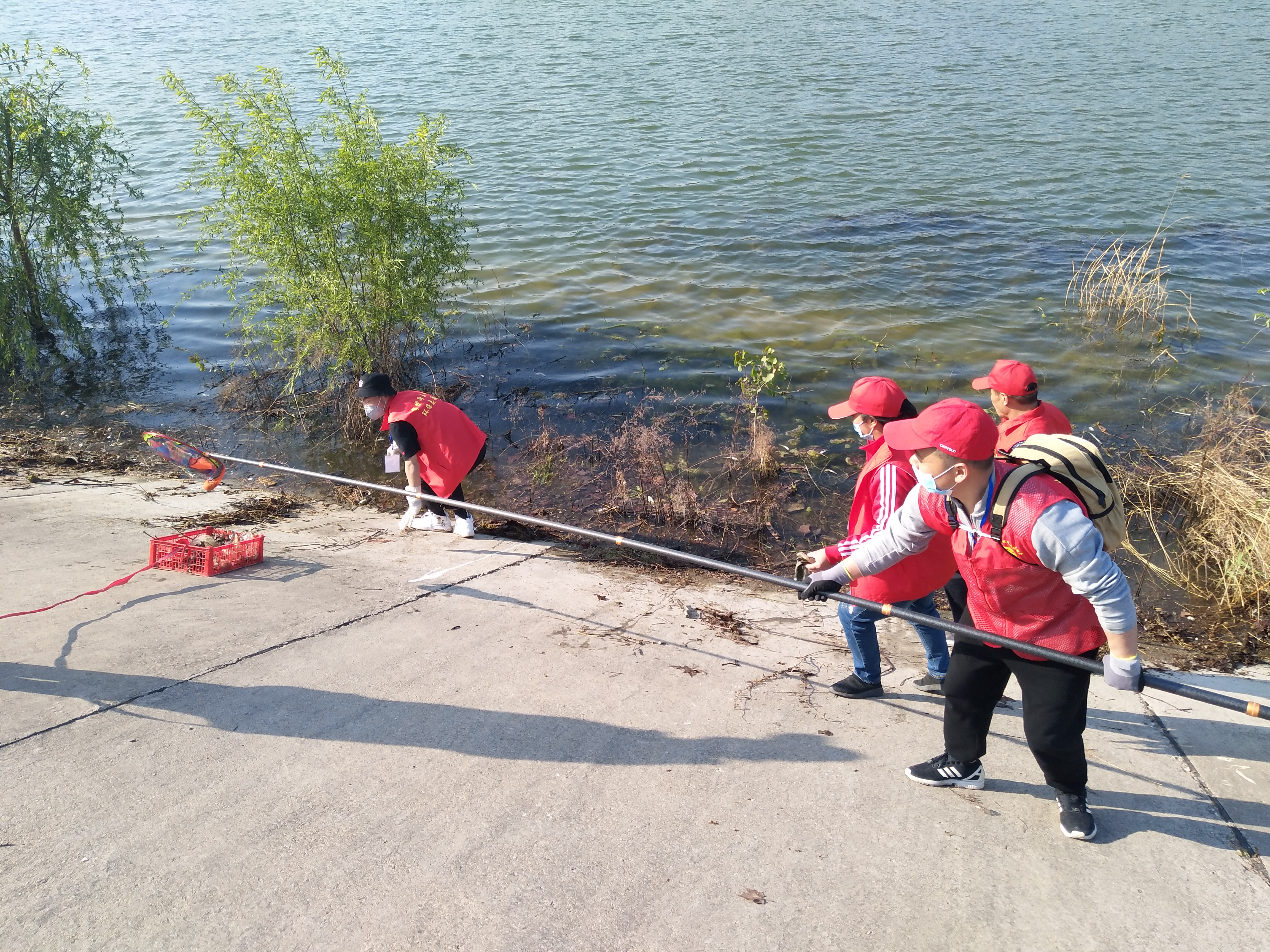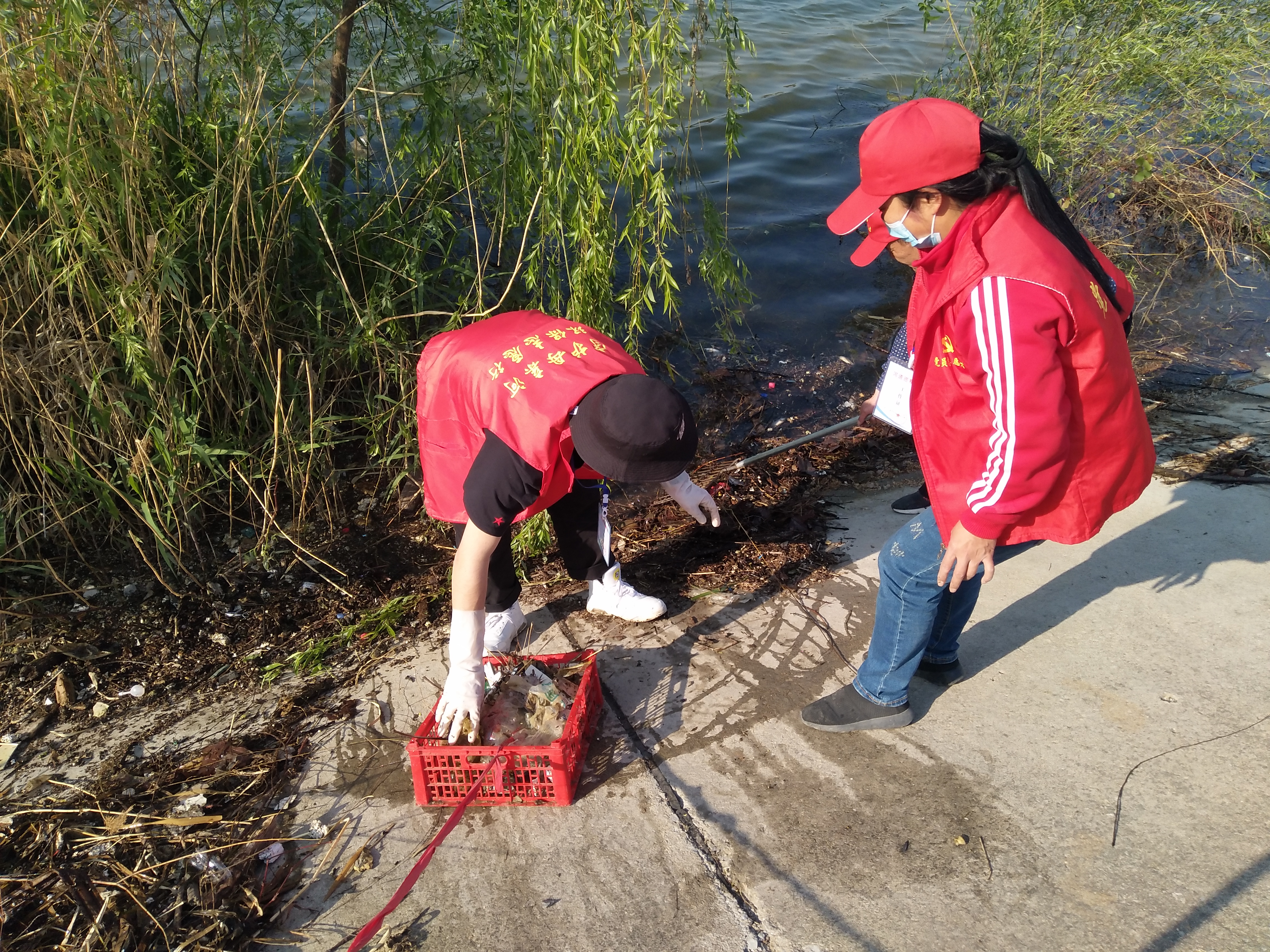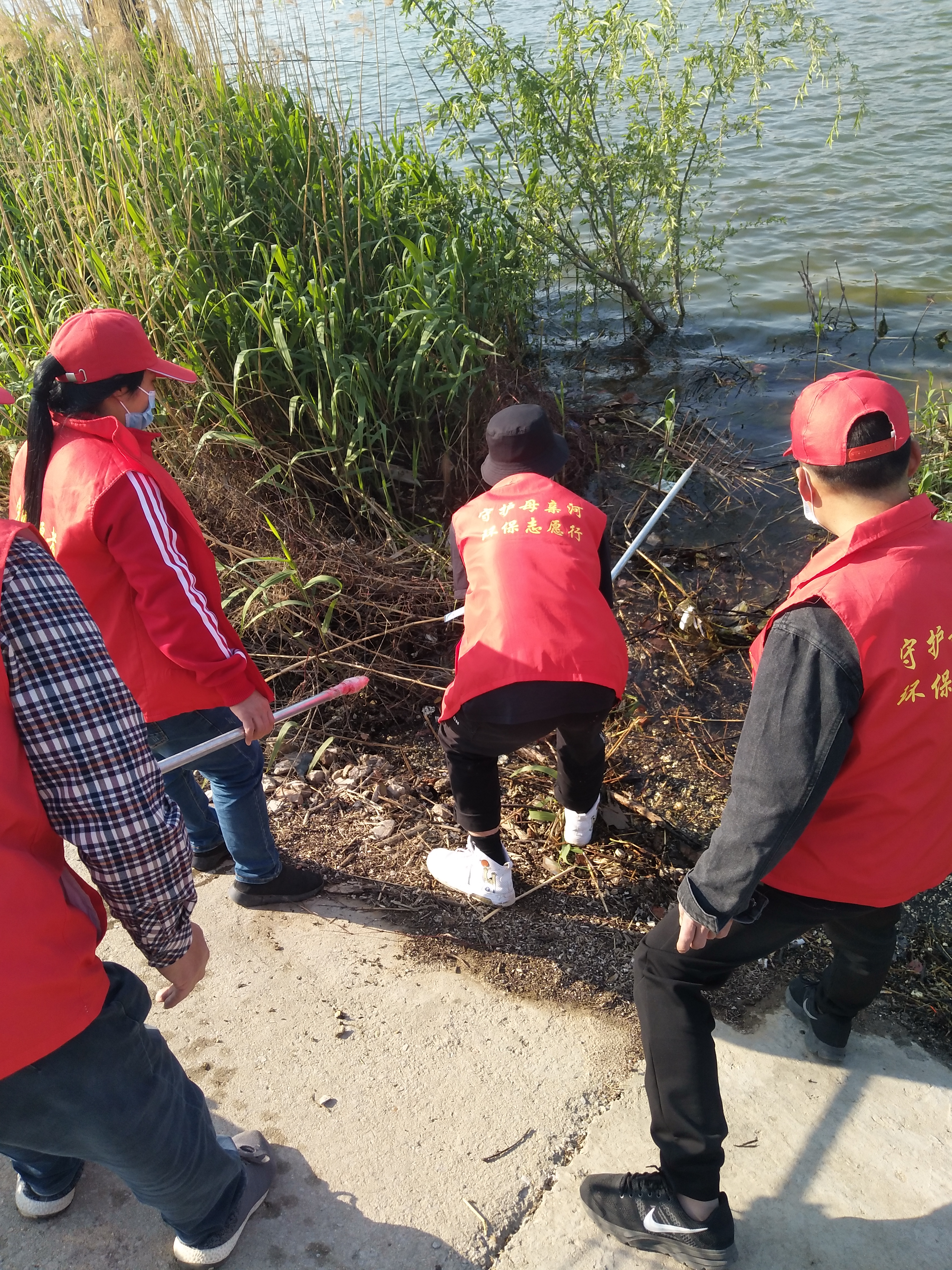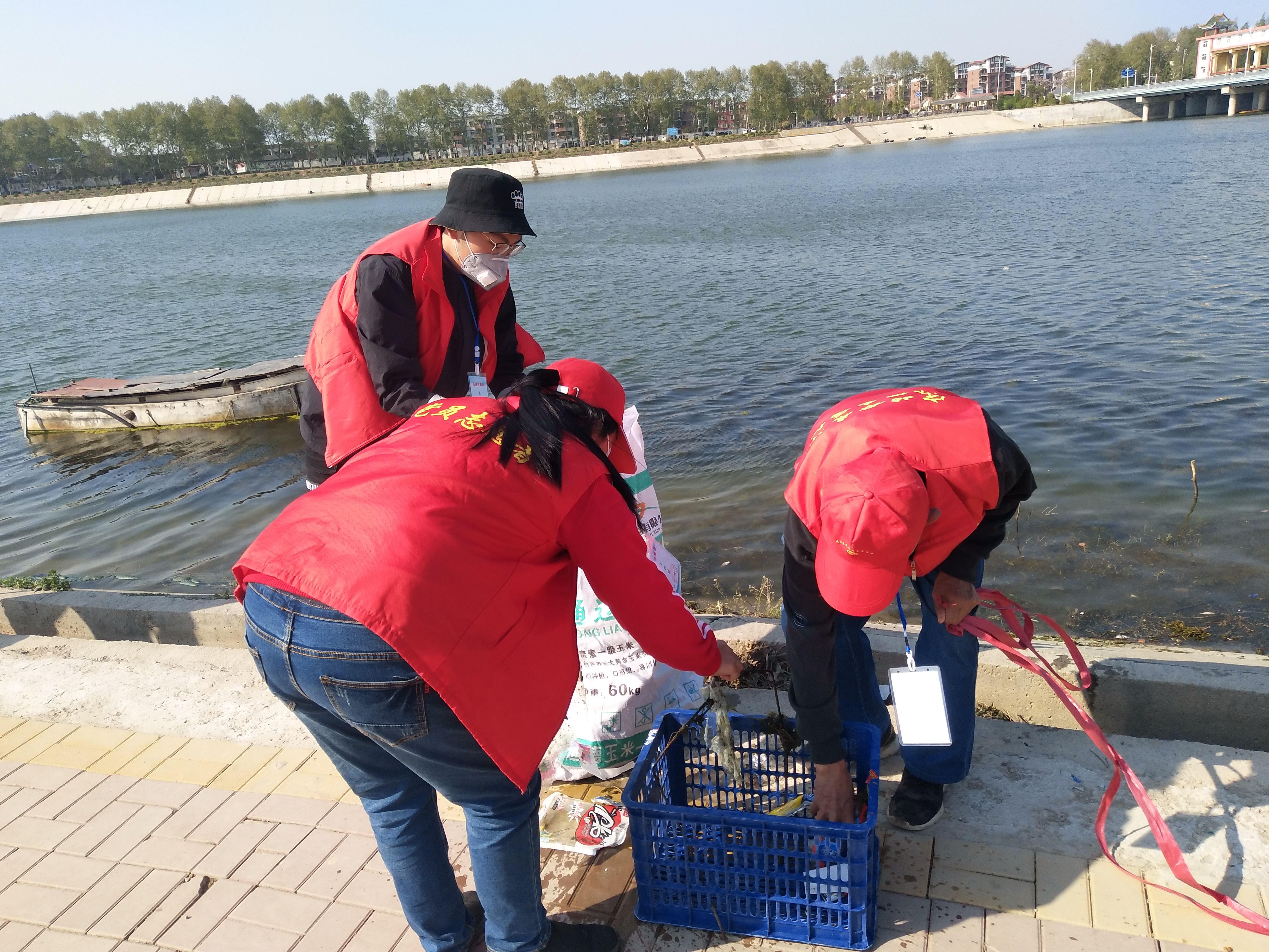 留下若干人員做問卷調(diào)查,孫彩云開始安排護河人員。誰拿鐵耙,誰拿網(wǎng)兜,誰拿垃圾箱,誰負責運垃圾袋……孫彩云一一分工后,拿起大喇叭給志愿者團隊提示注意事項:“只撿白色垃圾呀,不要鉤水草,這個季節(jié)魚在上面產(chǎn)卵呢!”