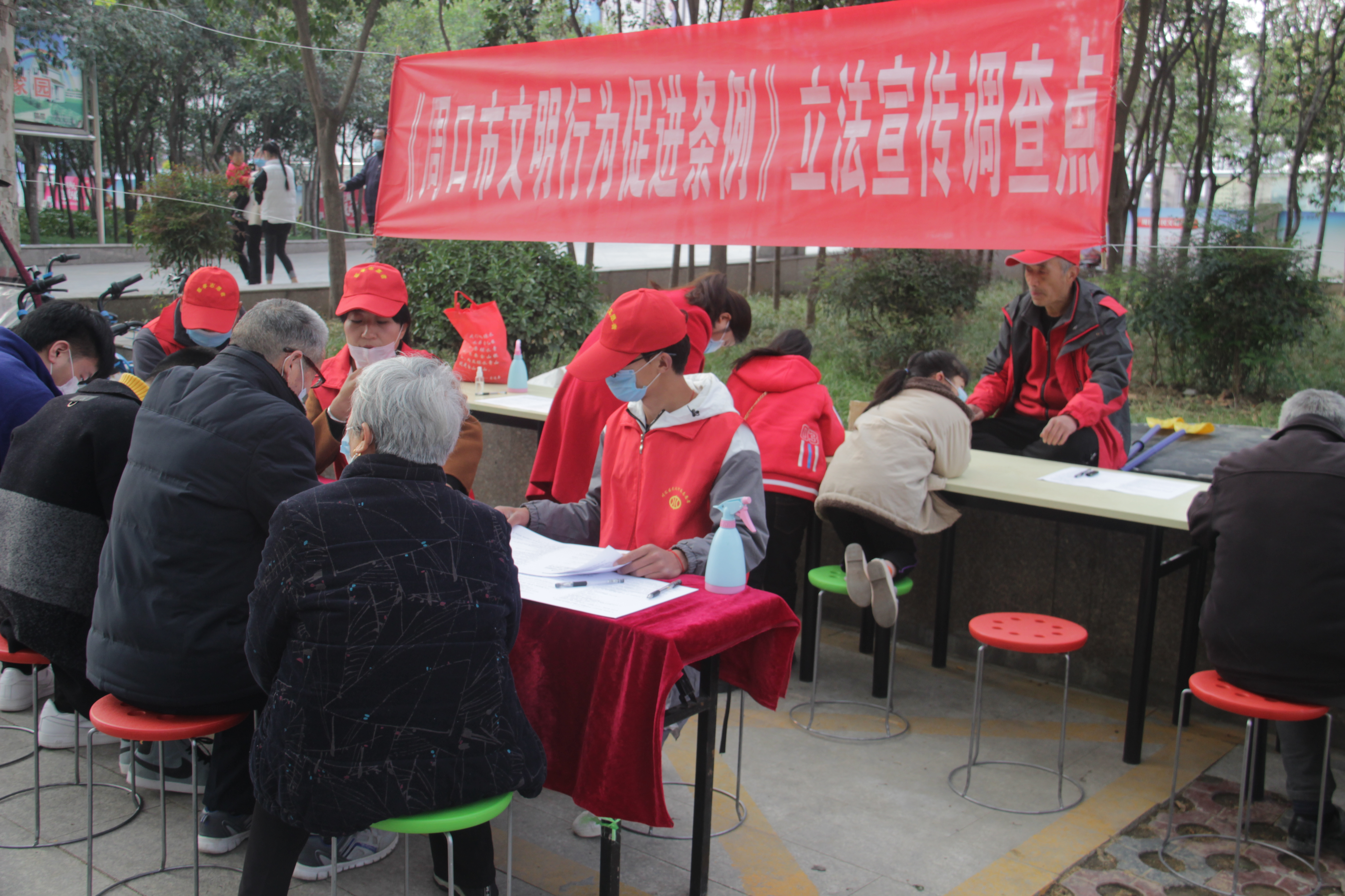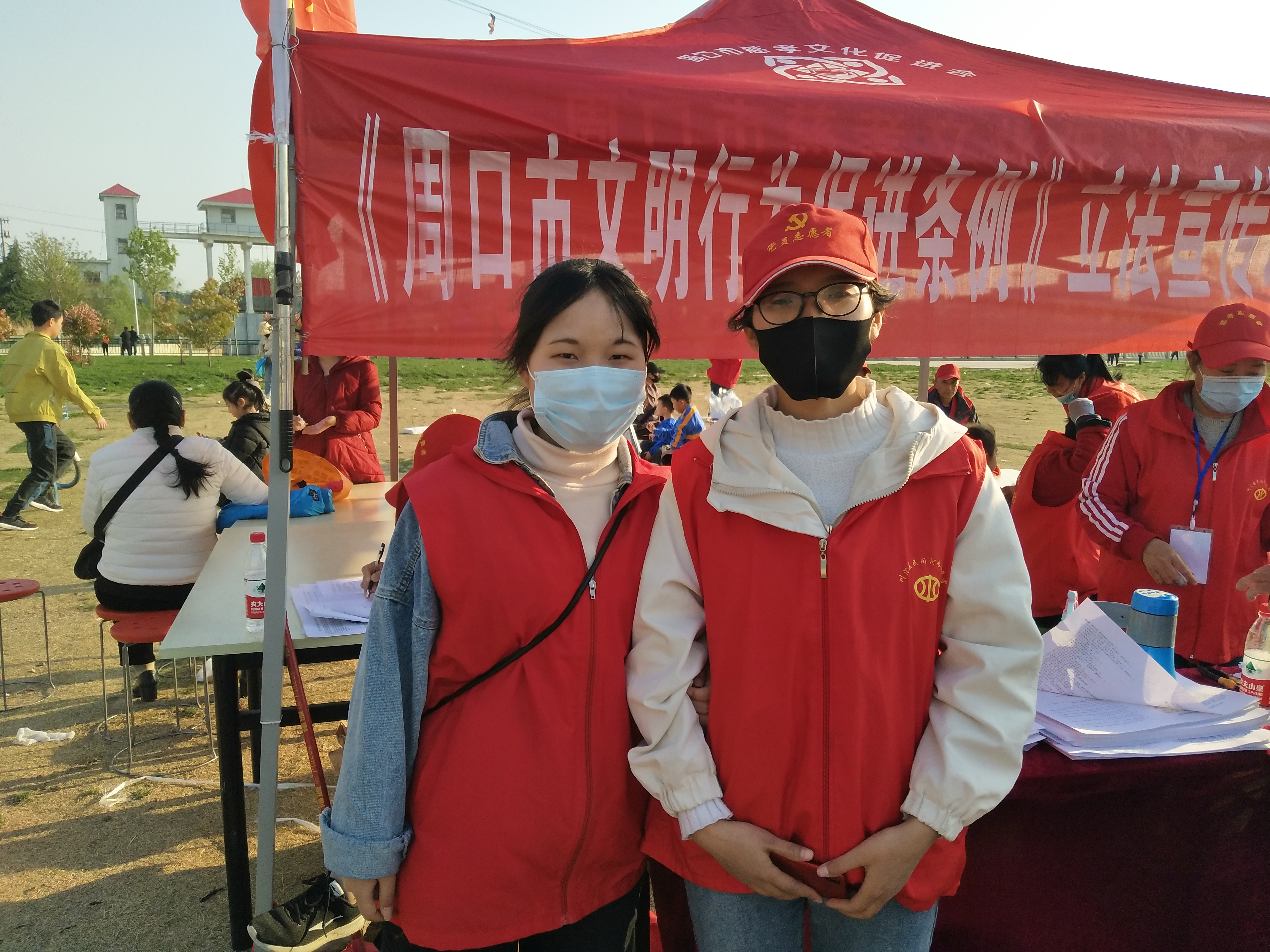 說著,孫彩云帶領(lǐng)記者走進《周口市文明行為促進條例》調(diào)查問卷棚?!拔覀兘裉焐衔缭谖逡粡V場做問卷調(diào)查,收了300多份,下午轉(zhuǎn)移到這里,這兩個淮陽來的大學(xué)生全程跟著?!眱擅髮W(xué)生看著記者,帶著口罩,雙眼彎彎不擋笑意,她們說:“我們是在海南上的大學(xué),很喜歡參加志愿者活動,這不因為疫情現(xiàn)在還沒開學(xué)嗎,在網(wǎng)上查到慈孝文化這個組織就來了。”