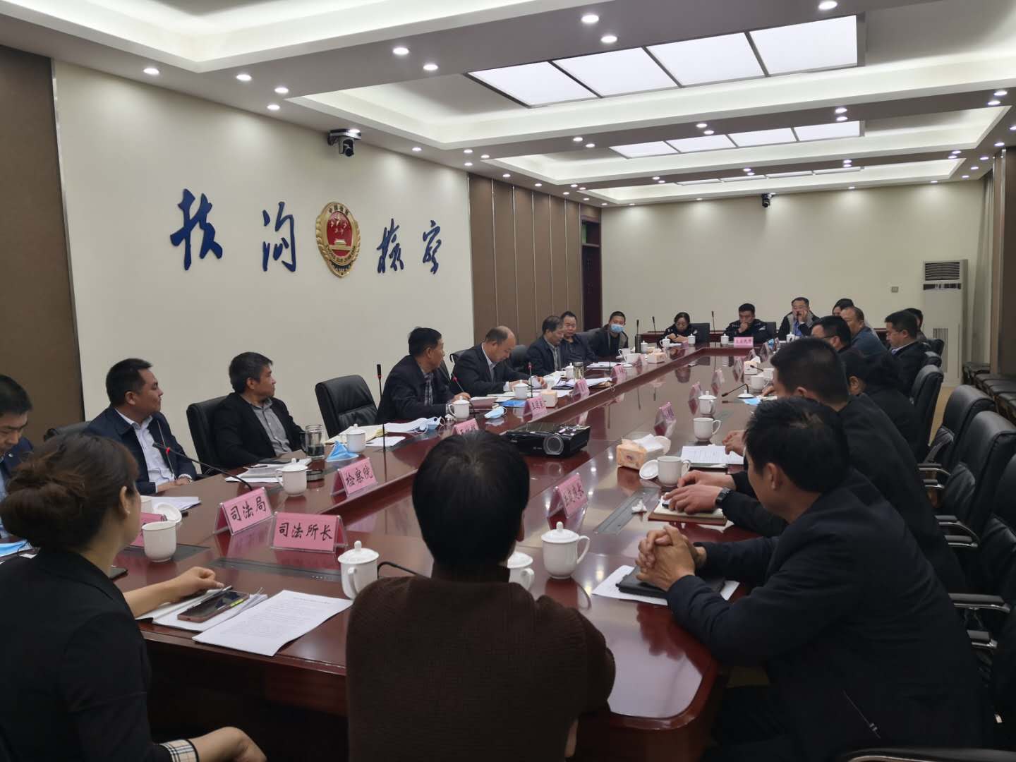 會上,與會人員就如何做好市域社會治理工作、如何整合基層政法力量、創(chuàng)新社會矛盾調(diào)處模式及打造平安扶溝等工作提出了切實可行的意見和建議。
