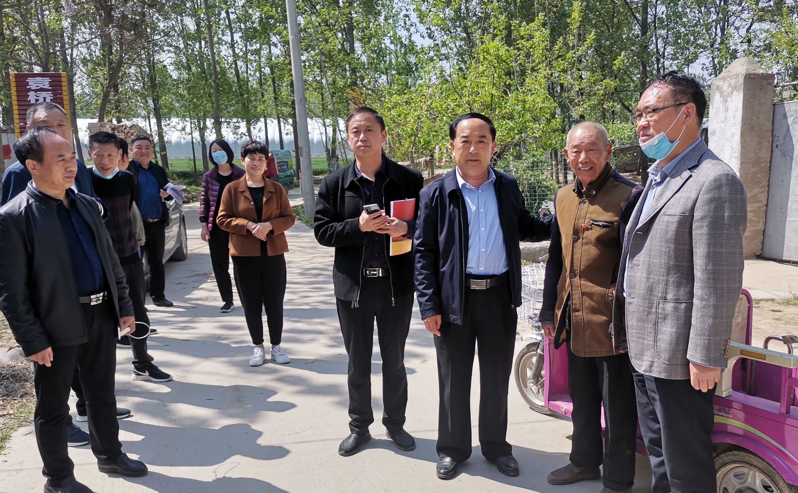 黨組書記張俊峰、局長葛澤洲在袁橋村指導(dǎo)扶貧工作,并和老黨員合影