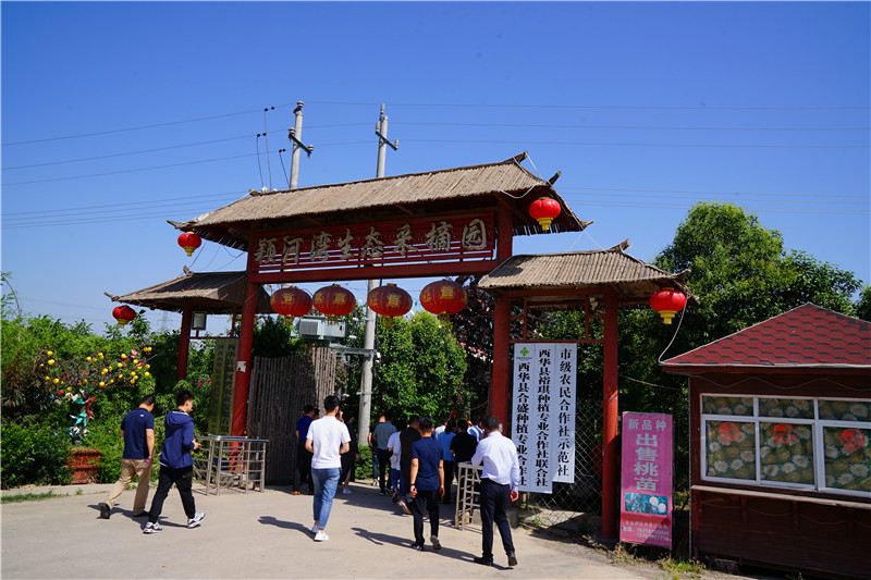 出安羅高速西華西站,沿S329線西行百余步,忽逢桃花林,南行數(shù)千步,中無(wú)雜樹,芳草鮮美,落英繽紛,林深處現(xiàn)一村莊?!巴恋仄綍?,屋舍儼然。阡陌交通,雞犬相聞。黃發(fā)垂髫,并怡然自樂(lè)……”穿越千年,陶淵明筆下的“桃花源”在西華縣黃橋鄉(xiāng)裴莊村得以“重現(xiàn)”。