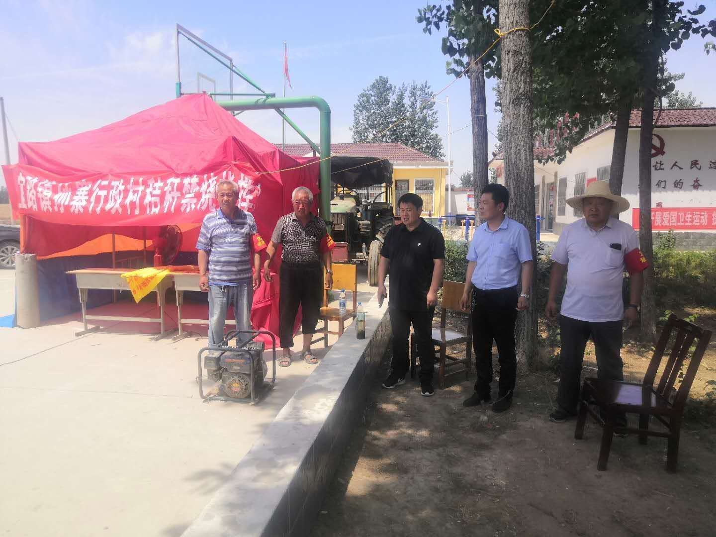 壓實責任,高標準搭建防火指揮棚,成立應急小分隊,制定排班表,分包責任田,分工細致、責任明確,指揮棚里專人值守,應急小分隊全天候巡邏,發(fā)現(xiàn)群眾在道路打場曬糧,和秸稈亂拋亂放,第一時間勸阻并組織人員清理,指揮棚全部配備鐵鍬、掃帚噴灌機、旋耕機,宣傳車也配齊鐵鍬和掃帚等滅火工具,裝備齊全,防患于未然。