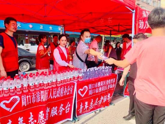 受疫情影響,推遲一個(gè)月的高考終于如約而至。7月7日,淮陽(yáng)區(qū)委編辦志愿者服務(wù)隊(duì)與區(qū)委組織部志愿者,聯(lián)合共同開(kāi)展“愛(ài)心助考”活動(dòng),在淮陽(yáng)一高校門(mén)口搭起帳篷,設(shè)立愛(ài)心站點(diǎn),為考生和家長(zhǎng)免費(fèi)提供礦泉水,為莘莘學(xué)子送去一份夏日的清涼和暖暖的祝福。