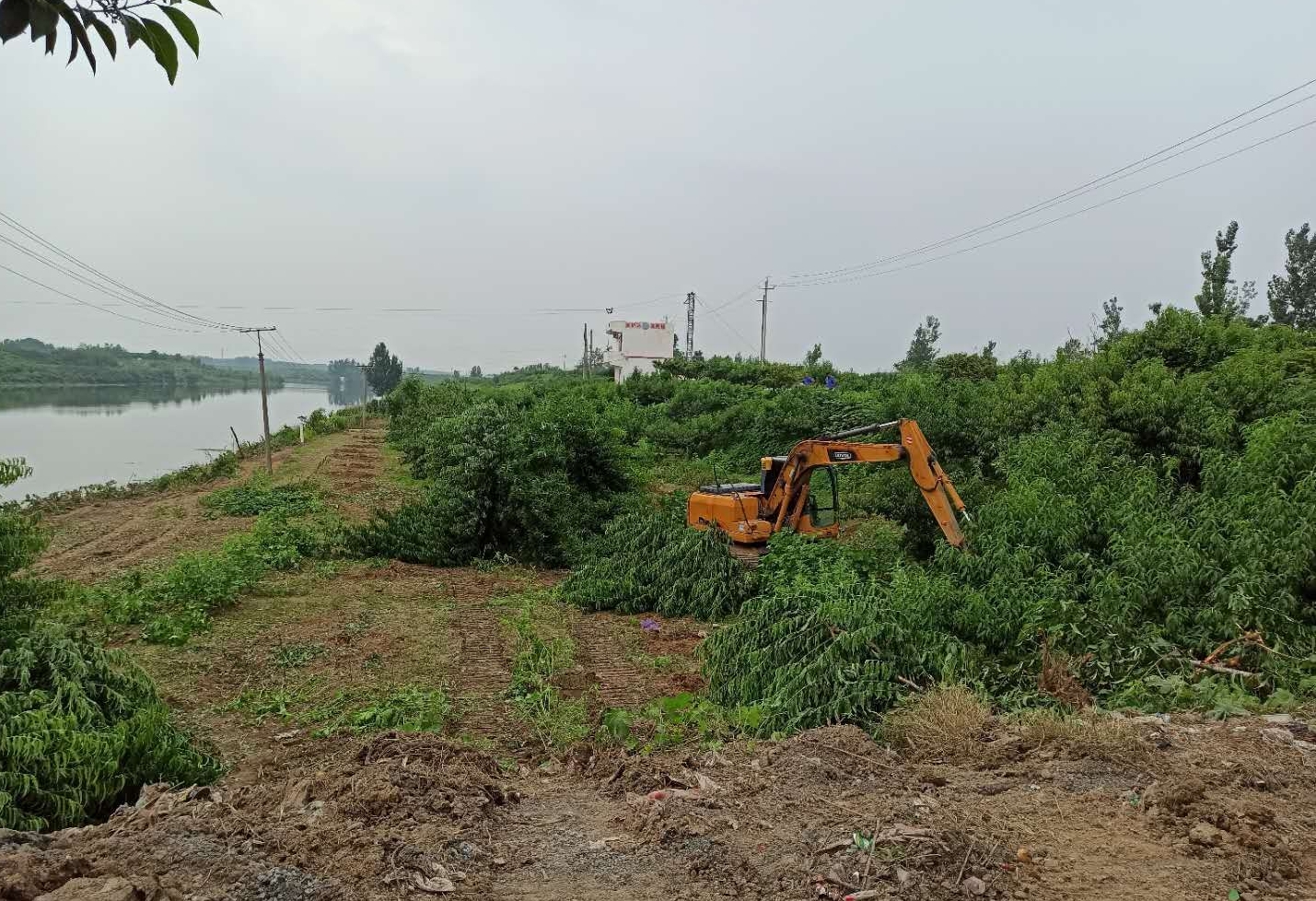 同時,該縣以《水法》《防洪法》《河道管理條例》等法律法規(guī),以及中共中央辦公廳、國務(wù)院辦公廳《關(guān)于全面推行河長制的意見》《河南省全面推行河長制工作方案》《河南省總河長令(第2號)》《河南省持續(xù)開展河湖“清四亂”行動方案》等重要文件為依據(jù),對河道管理范圍內(nèi)“四亂”問題進(jìn)行依法清理整治。潁河黃橋閘上下游灘地存在阻水林木,屬“亂占”行為。黃橋鄉(xiāng)政府與河道管理部門實(shí)地查看,制定清理方案,劃出清理范圍線,按照潁河防洪要求和管理實(shí)際情況,對潁河保證水位線以下高桿作物,樹木全部清理,確保防洪安全。目前,按照清理范圍,潁河黃橋管理段日出動挖掘機(jī)械四臺,已清理桃樹170棵、楊樹40棵、梧桐樹110棵、雜樹7畝,清理河道長1200米。