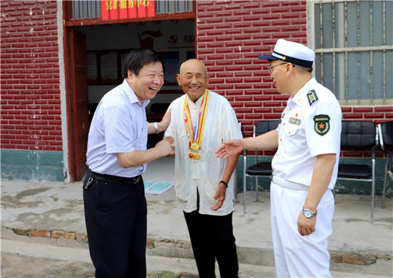 在90歲五級(jí)因戰(zhàn)殘疾軍人劉德山家,大伙認(rèn)真聽劉德山講述部隊(duì)的故事;汲冢鎮(zhèn)黃竹園行政村劉老家村88歲劉應(yīng)平參加過抗美援朝,如今年邁的老劉嚴(yán)重耳聾、語言交流障礙,還得靠親屬“翻譯”才能搭上一兩句話,當(dāng)聽到問他生活好不好時(shí),老劉興奮地豎起拇指說:“好好好”;今年94歲的抗戰(zhàn)老兵丁相廷身體十分硬朗、精神矍鑠,不拄拐、眼不花、耳微聾,得知縣領(lǐng)導(dǎo)要來慰問,老丁早早地把自己的軍功章準(zhǔn)備好了,一個(gè)個(gè)掛在胸前,見面一個(gè)軍禮彰顯剛強(qiáng)作風(fēng)。從1945年入伍至1950年復(fù)員,老丁記得清楚、講得明白,大伙聽得有味、不停點(diǎn)贊;巴集鄉(xiāng)段寨村92歲抗美援朝老戰(zhàn)士段相士有個(gè)堅(jiān)持幾十年的好習(xí)慣,他每天早上都在村里走一圈,感受美麗鄉(xiāng)村變化,再用溫水抹抹澡,保持健康體魄。