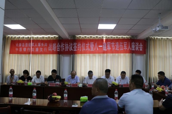 7月31日,太康縣退役軍人事務(wù)局與中原銀行太康支行舉行戰(zhàn)略合作協(xié)議簽約儀式,同時組織部分退役軍人召開了慶“八一”座談會。活動由退役軍人事務(wù)局副局長張規(guī)劃主持。