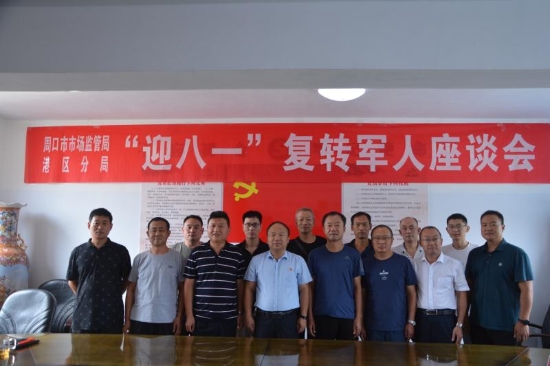 7月30日,周口市市場(chǎng)監(jiān)督管理局港區(qū)分局組織召開“迎八一”復(fù)轉(zhuǎn)軍人座談會(huì),領(lǐng)導(dǎo)班子成員和全局復(fù)轉(zhuǎn)軍人參加。