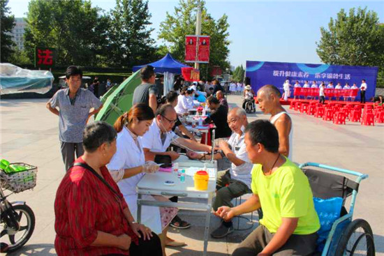 儀式現(xiàn)場(chǎng),多家單位負(fù)責(zé)人宣讀了“提升健康素養(yǎng) 樂享銀齡生活”倡議書。儀式結(jié)束后,現(xiàn)場(chǎng)舉行大型義診、健康咨詢、文藝表演等活動(dòng)。市、區(qū)醫(yī)療單位設(shè)立13個(gè)咨詢服務(wù)臺(tái),圍繞“提升健康素養(yǎng) 樂享銀齡生活”活動(dòng)主題,現(xiàn)場(chǎng)普及老年健康知識(shí),通過擺放健康知識(shí)展版、發(fā)放健康宣傳折頁(yè)、提供健康咨詢和現(xiàn)場(chǎng)義診服務(wù)等形式,為老年人提供量血壓、測(cè)血糖、測(cè)視力、等健康服務(wù)。針對(duì)常態(tài)化疫情防控中對(duì)老年人的生活照顧、健康管理、醫(yī)養(yǎng)結(jié)合、慢性病預(yù)防等內(nèi)容,結(jié)合老年人特點(diǎn),圍繞營(yíng)養(yǎng)膳食、運(yùn)動(dòng)健康、心理健康、合理用藥等方面展開科普宣傳指導(dǎo),普及老年健康科學(xué)知識(shí)和老年健康相關(guān)政策。叮囑老人做好居家衛(wèi)生,出門戴口罩,做好個(gè)人防護(hù),并針對(duì)老年人常見的高血壓、糖尿病、冠心病等,給予健康評(píng)估和健康指導(dǎo),讓廣大老年人切身感受到社會(huì)的關(guān)懷和溫暖,提高了老年人的健康素養(yǎng),收到了良好的社會(huì)效果。