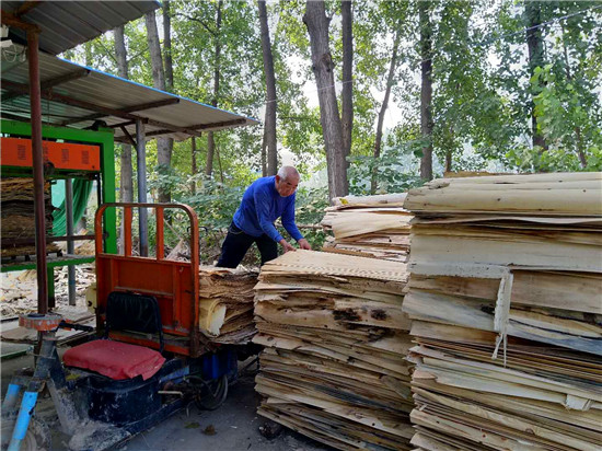 8月28日,商水縣練集鎮(zhèn)馬莊村的四紅木業(yè)有限公司板材加工車間內(nèi),機(jī)器轟鳴,工人忙著斷木、打圓、卷板,一張張板材被切割后,拉到曬板場(chǎng)晾曬?!坝辛诉@份收入,去年全家脫貧摘帽?!闭谲囬g里搬運(yùn)板材的馬莊村貧困戶王天林對(duì)記者說(shuō)。