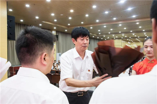 羅明黨宣讀鄲城縣教育體育局對(duì)鄲城二高趙耀校長(zhǎng)的賀信。局黨組向鄲城二高取得優(yōu)異成績(jī)的莘莘學(xué)子表示熱烈祝賀,向辛勤耕耘的全體教職員工表示衷心感謝和親切慰問,并希望二高面對(duì)高考改革的滾滾大潮和人民群眾對(duì)優(yōu)質(zhì)教育的迫切需求,認(rèn)真總結(jié)經(jīng)驗(yàn),堅(jiān)定辦學(xué)信念,瞄準(zhǔn)更高目標(biāo),進(jìn)一步深化管理改革,優(yōu)化教學(xué)方法,豐厚教育內(nèi)涵,提升辦學(xué)水平,為推動(dòng)鄲城教育高質(zhì)量發(fā)展再添重彩、再立新功!