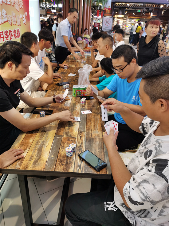 9月13日下午,在位于五一地下廣場(chǎng)的周口·果果茂內(nèi),不少市民在參加網(wǎng)紅斗地主爭(zhēng)霸賽活動(dòng)。據(jù)了解,該活動(dòng)是每周六、周日舉行,不少來此購物的市民參加了此項(xiàng)活動(dòng)。主辦方不收取費(fèi)用,主要是為了給購物們市民增加點(diǎn)娛樂,增強(qiáng)購物中心的人氣。此前還舉辦過五子棋比賽等活動(dòng)。
