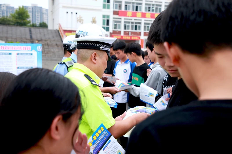 民警們還給師生發(fā)放了交通安全知識宣傳單,倡議同學們當好道路交通安全知識“小宣傳員”“小監(jiān)督員”,監(jiān)督自己的家長和身邊的小朋友規(guī)范交通行為,知安全風險、懂緊急避險,防患于未然,遠離交通事故危害。