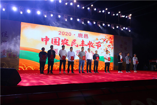 9月22日晚,由中共鹿邑縣委、鹿邑縣人民政府主辦的2020年鹿邑縣農(nóng)民豐收節(jié)文藝晚會(huì)在鹿邑縣文化中心廣場(chǎng)舉辦。晚會(huì)現(xiàn)場(chǎng)頒布了鹿邑縣“十佳家庭農(nóng)場(chǎng)”“十佳農(nóng)民合作社”“十佳特色農(nóng)產(chǎn)品品牌”“十佳返鄉(xiāng)創(chuàng)業(yè)脫貧致富帶頭人”“十佳脫貧致富先進(jìn)個(gè)人”五項(xiàng)獎(jiǎng)項(xiàng),40名新型農(nóng)民(農(nóng)場(chǎng)、合作社)代表和10個(gè)特色農(nóng)產(chǎn)品品牌獲殊榮,他們用行動(dòng)和產(chǎn)品充分展示了全縣現(xiàn)代農(nóng)業(yè)在過去一年中取得的輝煌成果。縣領(lǐng)導(dǎo)雷申、楊所超、侯自峰、王曉征、張國慶、肖西國等出席豐收節(jié)晚會(huì),并為獲獎(jiǎng)?wù)哳C發(fā)榮譽(yù)證書和獎(jiǎng)牌。