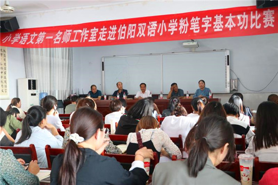 “漢字是中華民族的瑰寶,寫字教學(xué)是教師的一項(xiàng)基本功。此次縣硬筆書法協(xié)會(huì)應(yīng)邀來到伯陽學(xué)校,舉行書法進(jìn)校園活動(dòng)。省書法家協(xié)會(huì)會(huì)員、縣書法家協(xié)會(huì)副主席李曉杰,省美術(shù)家協(xié)會(huì)會(huì)員劉龍飛作為特邀嘉賓現(xiàn)場揮毫潑墨與師生現(xiàn)場交流,將活動(dòng)引向高潮?!笨h硬筆書法協(xié)會(huì)主席鮑雁冰說,結(jié)合自己多年對(duì)硬筆、毛筆習(xí)字的感悟,重點(diǎn)對(duì)教師進(jìn)行“如何寫好字”的培訓(xùn),使教師知道練字既能提高寫字技能,又可修身養(yǎng)性,從而引發(fā)了教師練習(xí)書法的興趣。(③2)