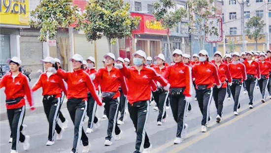 10月11日早晨,鄲城大街上迎來(lái)了一道靚麗的風(fēng)景線——他們身著鮮艷的紅色運(yùn)動(dòng)服,肩扛五星紅旗,手扯橫幅,隨著動(dòng)感十足的音樂,昂首闊步徜徉在金色的秋天里……