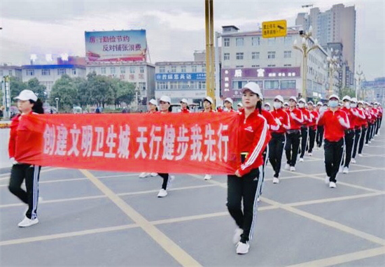 這是鄲城縣融媒體中心聯(lián)合縣人民公園天行健步隊(duì)共同舉行的“創(chuàng)文”宣傳活動(dòng)之一。近百名健步走愛好者積極響應(yīng)號(hào)召,走上街頭,用健步走的方式為“創(chuàng)文”助力。他們邁著矯健的步伐,做出整齊劃一的動(dòng)作,先后經(jīng)過新華路、育新路、廣場(chǎng)南路和府東路,一路“閃亮”、一路風(fēng)景,引來(lái)市民紛紛駐足觀看、點(diǎn)贊。