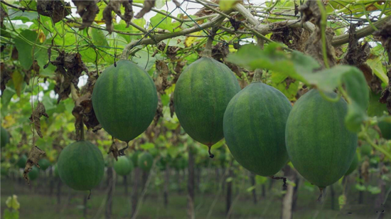“瓜蔞,又叫吊瓜、野葫蘆,多年生藤本植物,塊根圓柱狀,富含淀粉。它渾身是寶,果子能入藥,也能加工食用?!苯?,在鄲城縣寧平鎮(zhèn)瓜簍種植基地,寧平鎮(zhèn)黨委書記徐汝敏看著滿眼豐收景象的瓜簍,臉上滿是笑容。