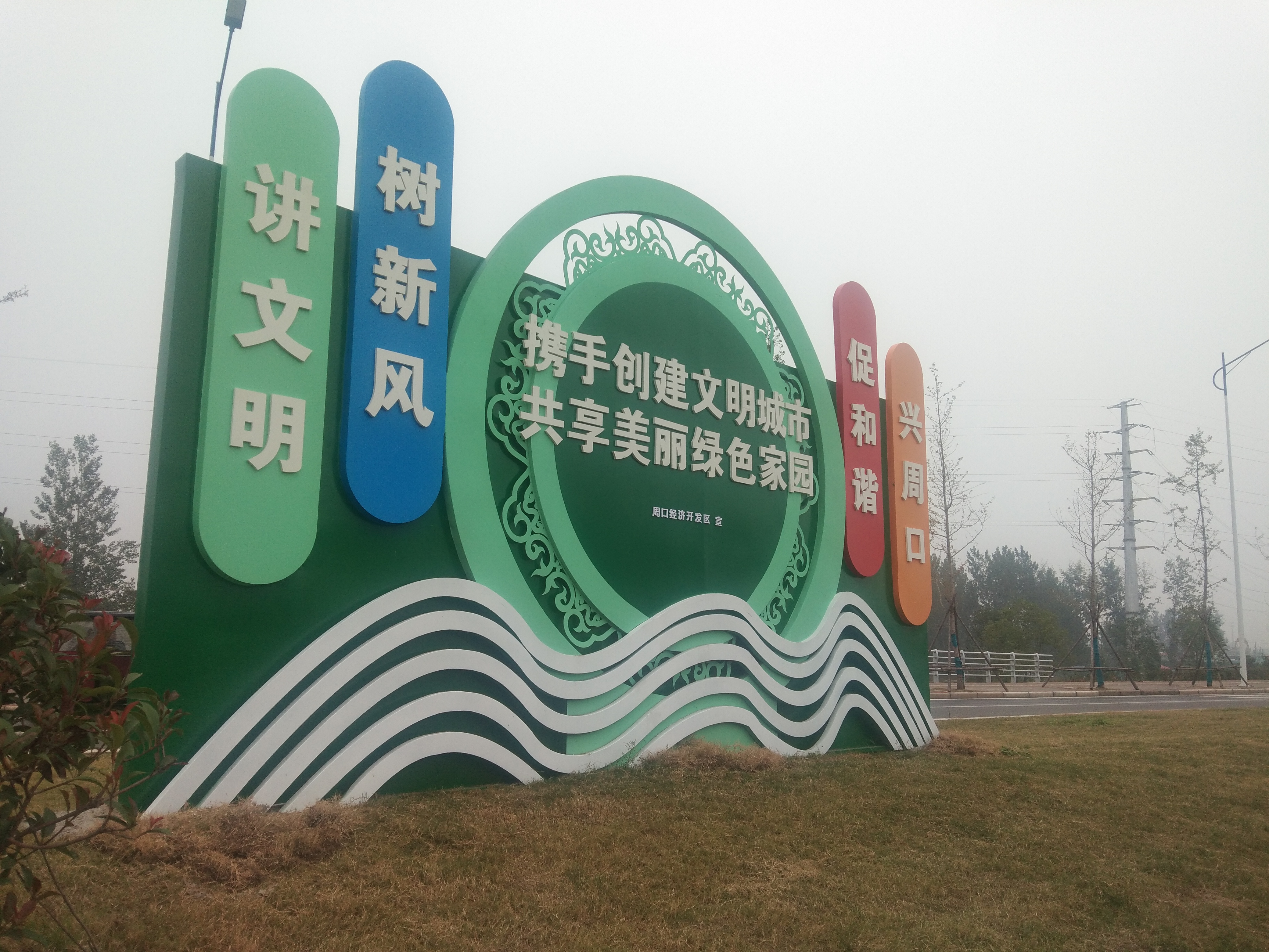 10月13日,記者看到一個(gè)寫有“講文明、樹新風(fēng)、促和諧、興周口”的公益廣告牌出現(xiàn)在周口大道邊。如今,一個(gè)個(gè)造型精美的公益廣告牌出現(xiàn)在中心城區(qū),為“創(chuàng)文”營(yíng)造濃厚的宣傳氛圍的同時(shí),也扮靚了城市。②2張洪濤 攝