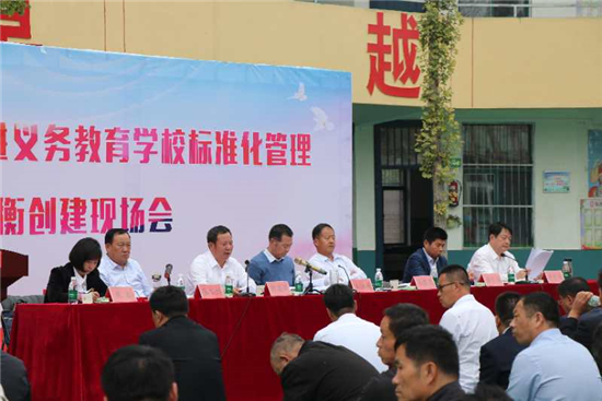 10月20日上午,淮陽區(qū)推進義務教育學校標準化管理暨均衡創(chuàng)建現(xiàn)場會在豆門鄉(xiāng)召開?;搓枀^(qū)政法委書記、副區(qū)長王汝凌,淮陽區(qū)教體局黨委書記、局長師建鋒和局黨組其他成員、區(qū)教體局相關(guān)股室負責人、各鄉(xiāng)鎮(zhèn)中心校校長、各鄉(xiāng)鎮(zhèn)中心校業(yè)務校長,以及全區(qū)136所均衡迎驗學校校長、局直學校校長、豆門鄉(xiāng)各中小學校長共計270人參加了會議。