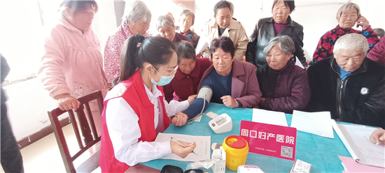 2020年第11個全國“敬老月”和第八個“老年節(jié)”,團(tuán)市委聯(lián)合周口婦產(chǎn)醫(yī)院走進(jìn)西華縣李方口村開展敬老愛心義診活動。圖為義診現(xiàn)場。(記者 馬月紅 攝)