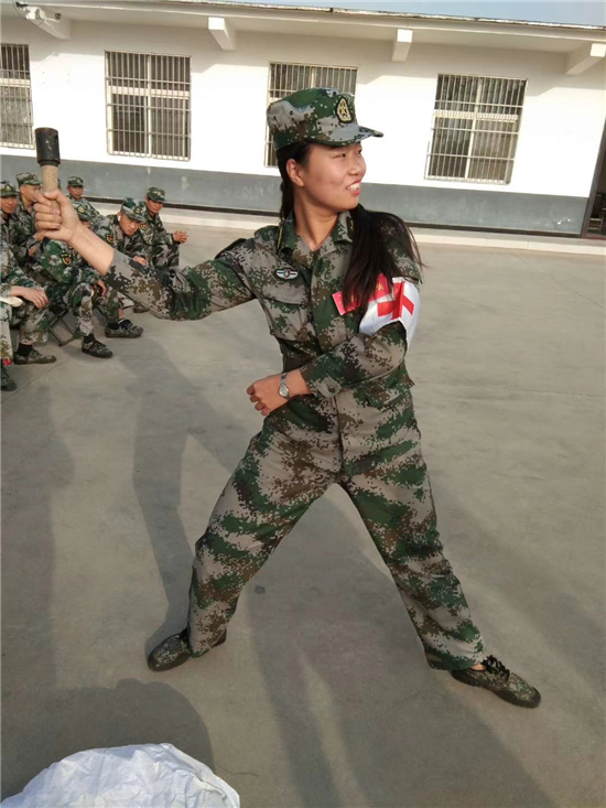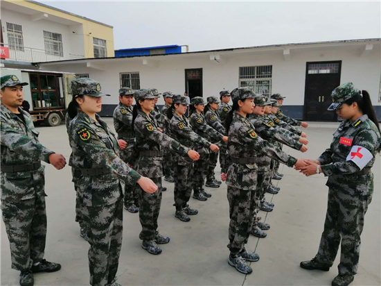 白衣天使愛武裝,聚焦打贏練武忙。在隊列訓練中,20名女民兵按照教練的口令,一遍一遍的練習立正、稍息、停止間轉法,很快隊伍隊列有了起色,基干民兵魏慧娟剛開始還有些順拐,兩條腿也不聽使喚,教練員劉思嘉一遍一遍為她開小灶、糾正動作,三番五次,不厭其煩。終于,魏慧娟不順拐了,并通過加班加點、不斷刻苦的訓練,成為了隊列訓練的標兵。