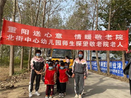 在九九重陽(yáng)節(jié)來(lái)臨之際,東夏亭鎮(zhèn)北街中心幼兒園師生到鎮(zhèn)敬老院看望慰問(wèn)老人。為敬老院的老人們帶來(lái)水果、餅干等慰問(wèn)品,也給老人們帶來(lái)了心靈上的慰藉。