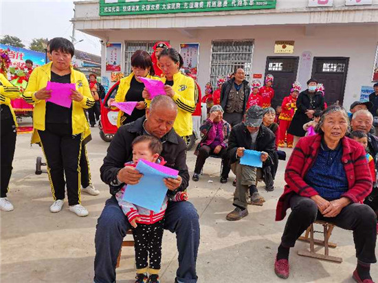 “俺家住在老冢鎮(zhèn),平安建設(shè)常宣傳。專職巡邏無被盜,提高群眾安全感……”這是10月20日,在太康縣老冢鎮(zhèn)新李村文化廣場上村民們表演的方言快板《安全感調(diào)查》,通俗易懂的語言,精彩有趣的說唱贏得了在場群眾的陣陣掌聲。