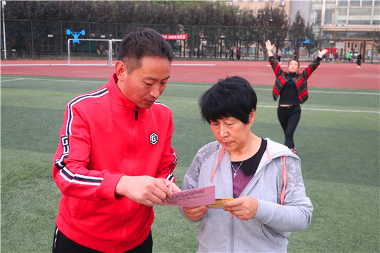 活動中,志愿者們向晨練的群眾發(fā)放健康運動提示卡、防范電信詐騙、掃黑除惡、不動產登記等方面的宣傳材料,免費派發(fā)“愛心粥券”;細心講解老年人常見的十大心理、常見病的預防等強身健體保健常識,引導群眾合法應對“保健品大促銷”、“集資詐騙”等典型詐騙行為;倡導老年人多了解法律知識,以提高識別詐騙、自我維權的能力。同時,志愿者們主動拾撿體育場內的樹葉、雜物等,為晨練群眾創(chuàng)造干凈衛(wèi)生的健身環(huán)境,深受群眾喜愛和稱贊。
