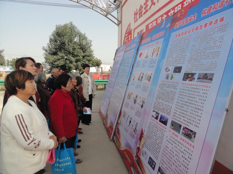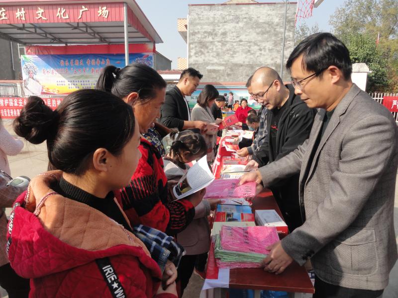 為紀(jì)念《反間諜法》頒布實施6周年,商水縣委政法委、縣委國安辦等單位聯(lián)合開展普法教育進(jìn)鄉(xiāng)村活動,通過發(fā)放宣傳資料、展示宣傳版面、現(xiàn)場講解等形式對群眾進(jìn)行國安教育和法治教育。圖為11月1日,工作人員在活動現(xiàn)場向村民發(fā)放宣傳資料。